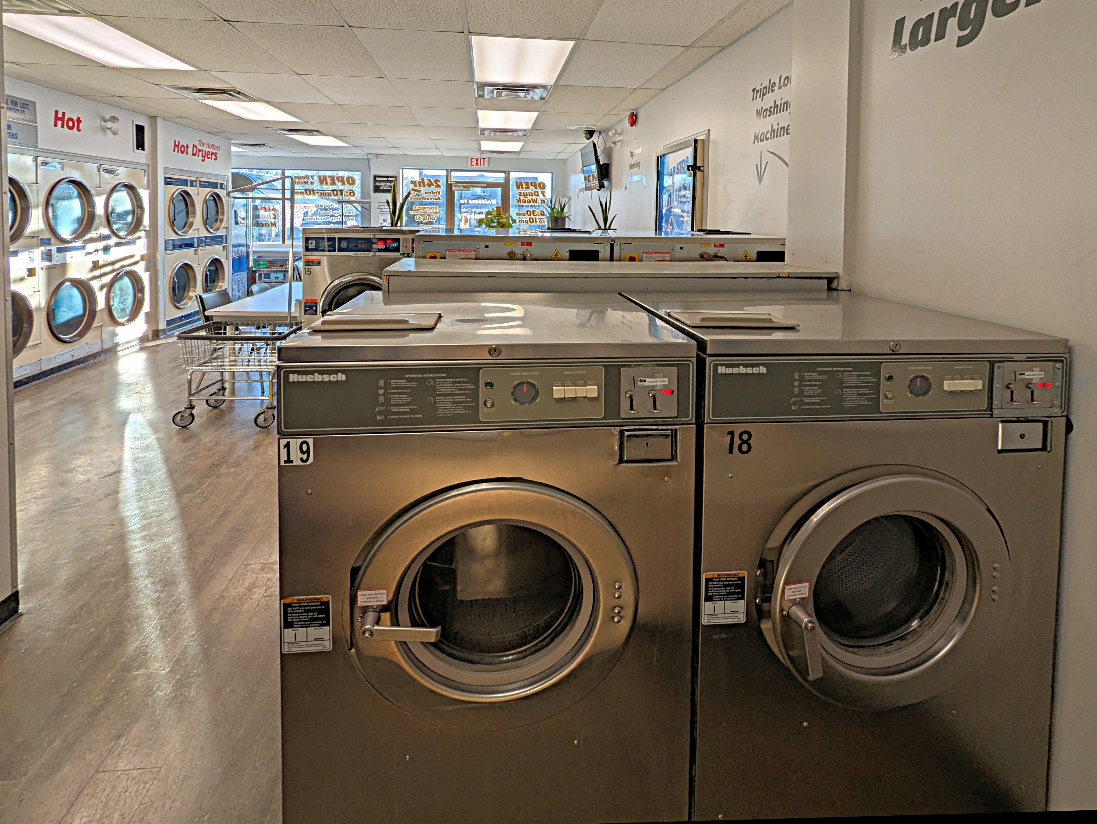 Located in the heart of Barrie, our laundromat offers clean, well-maintained laundry machines at an exceptional value. We have various sizes of washers & dryers available to suit all your laundry needs. For your convenience, we also have a change machine, ATM, Tide soap, Bounce dryer sheets, pop machine and washroom. Wash and fold service is also available with pickup and delivery option.